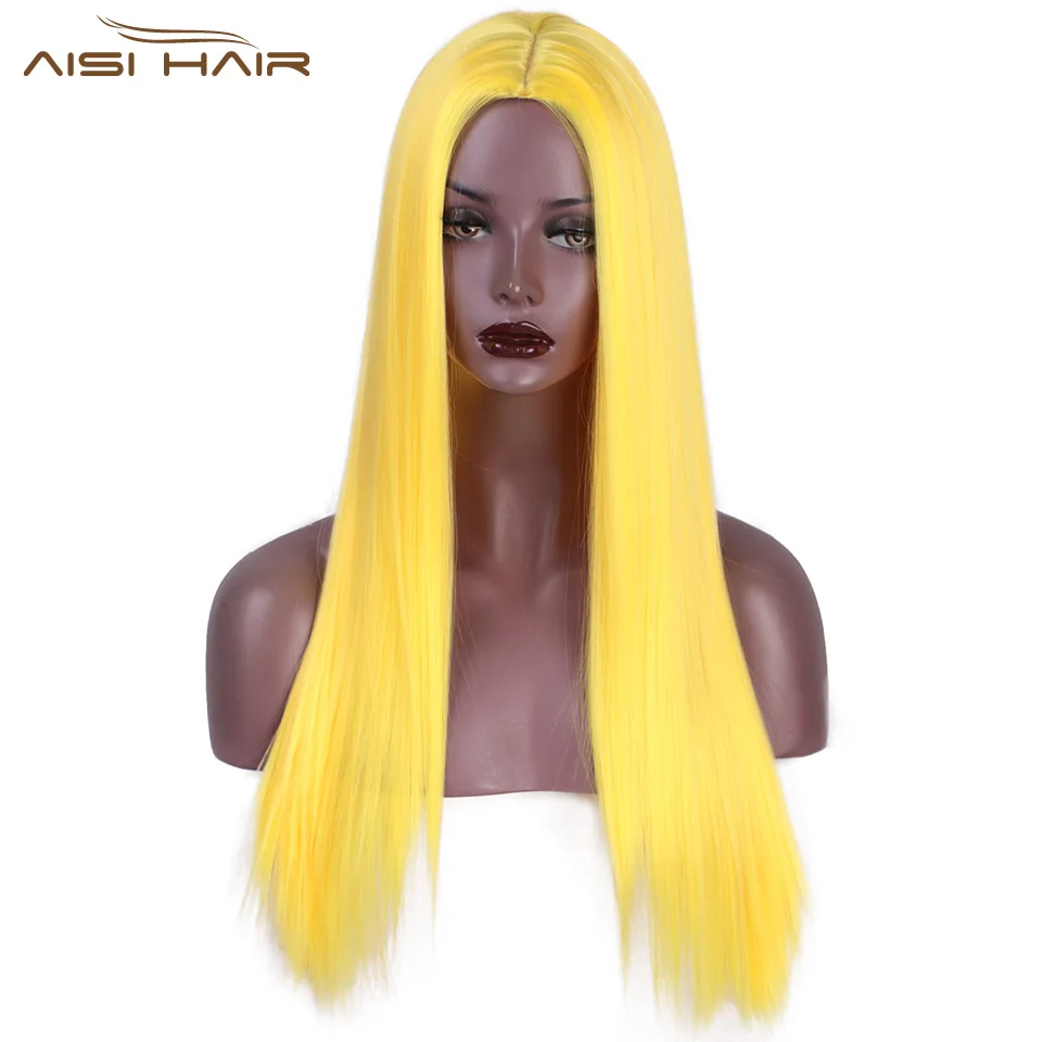 Best Quality I's a wig Yellow Color Synthetic Long Straight Wigs for Women Pink Purple Orange Colorful Cosplay W