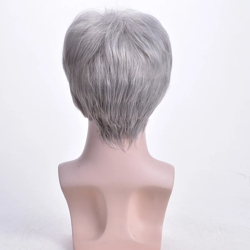 Best Quality MSIWIGS Short Silver Grey Wig Mens Short Synthetic Hair Wigs Straight for Man