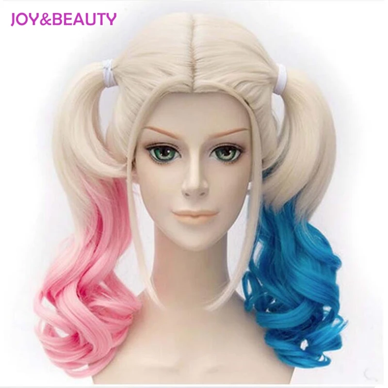 JOY&BEAUTY Hair Harley Quinn Cosplay Wig Styled Wavy Synthetic Ponytail Wig High Temperature Fiber