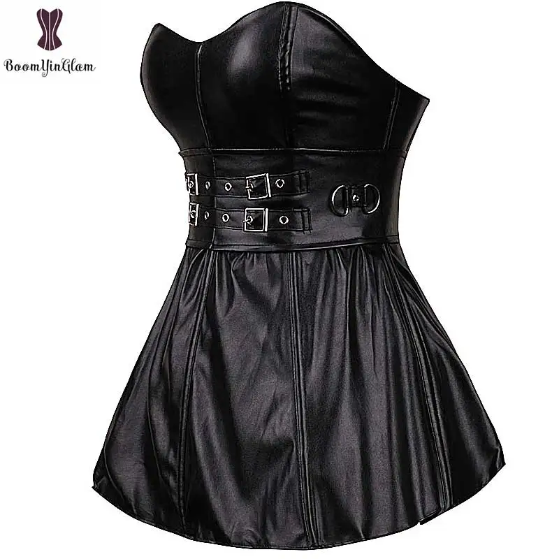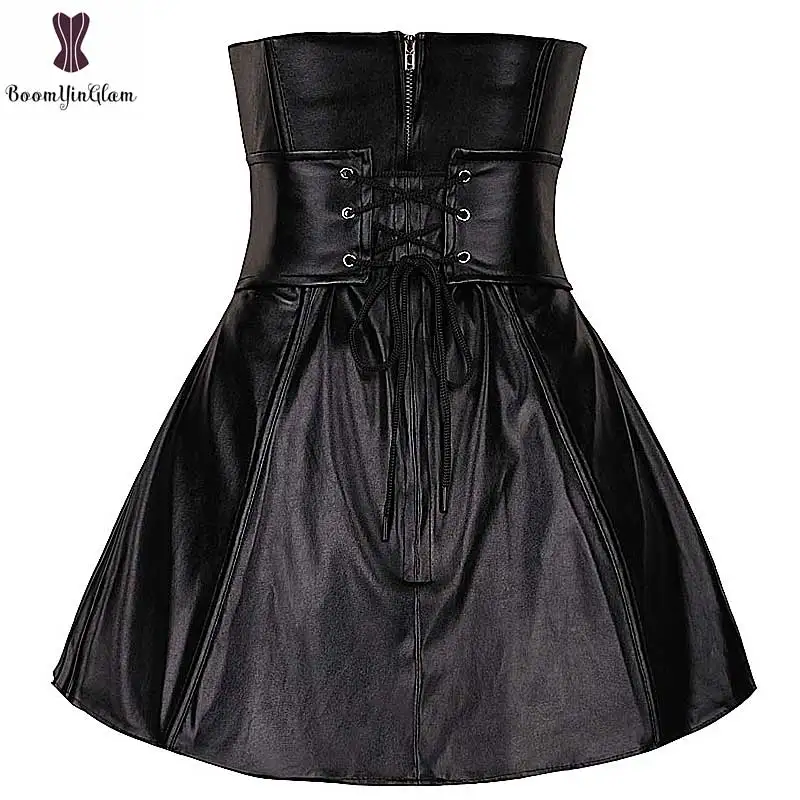 Corset Dress Faux Leather Strapless Black Clubwear Sexy Bustier Dress Outwear Buckled Body Shaper P