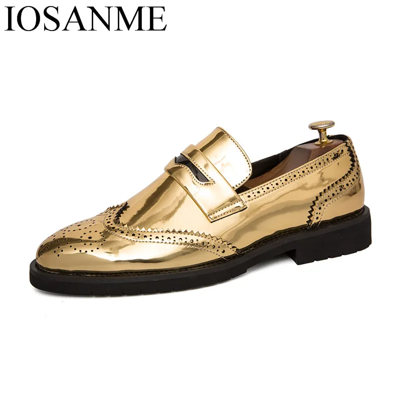 fashion gold leather shoes men luxury brand business brogue oxfords shoes for men wedding flats des