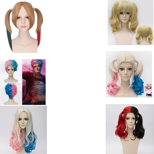 ORIGINAL Anime Suicide Squad Harley Quinn Wigs Cosplay Peluca Styled Curly Synthetic Costume Wig Heat Resist