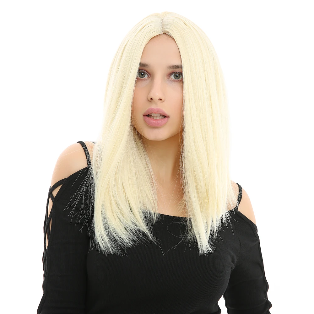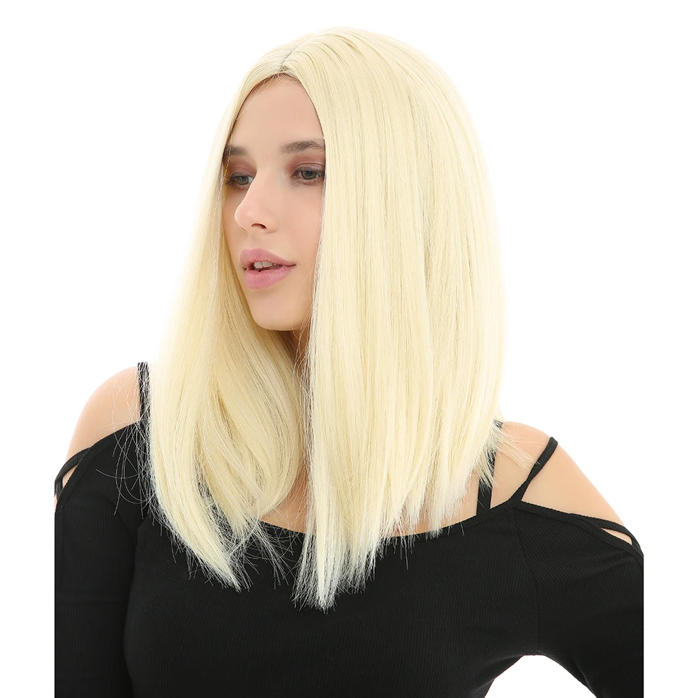 WHIMSICAL W 14 inch Short Straight Wigs 613 Color Synthetic Wig For Women Natural Middle Part Heat