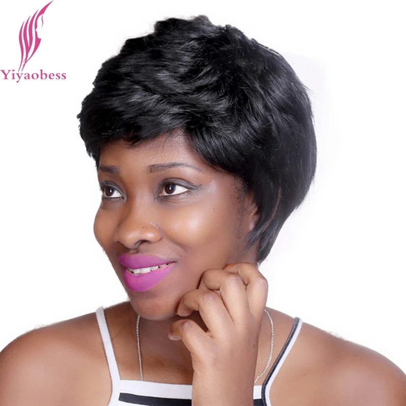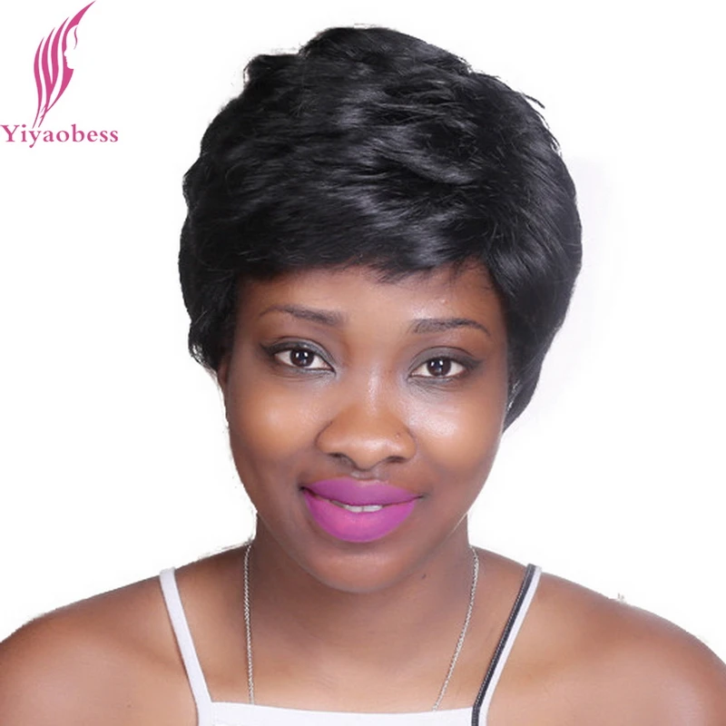 TOP Yiyaobess 6inch Little Curly Short Black Hair Wigs For Women Heat Resistant Synthetic African Ameri
