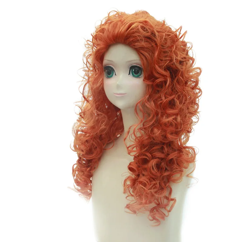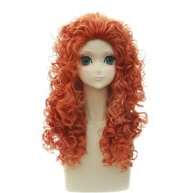 Hot Sale Movie Brave Princess Merida Cosplay Costumes Mei Lida Long Curly Synthetic Wigs Hair Halloween Part