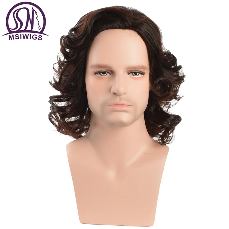 BEST SELLER MSIWIGS Men Medium Wig Curly Dark Brown Colour Hair Synthetic for Male