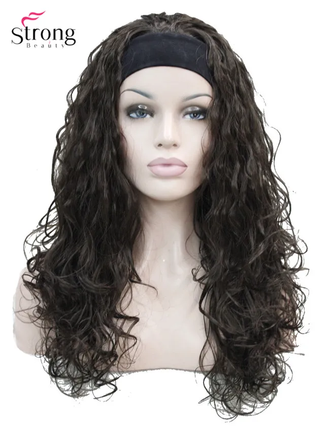 TOP StrongBeauty Long Curly Black Brown Blonde Headband Synthetic Wig Women's Wigs
