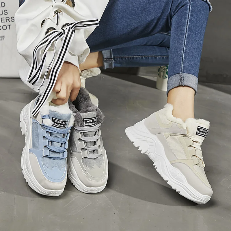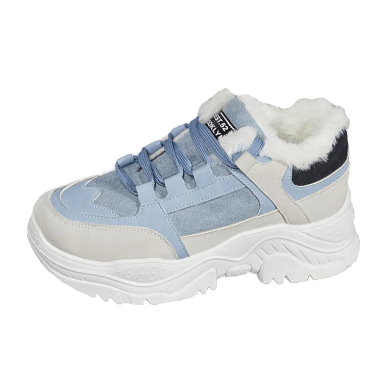 TOP Fashion Winter Fur Sneakers Women's Casual Thick Sole Shoes Warm Plush Chunky Dad Sneaker Ladies Tr