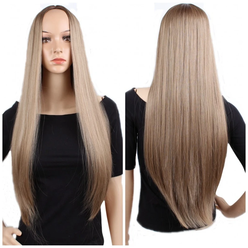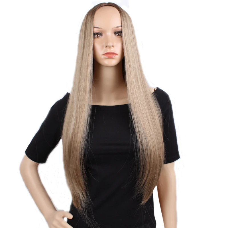 HOT Sale JOY&BEAUTY Brown Ombre Blonde Long Straight Synthetic Wig 28inch/72cm High Temperature Fiber Women