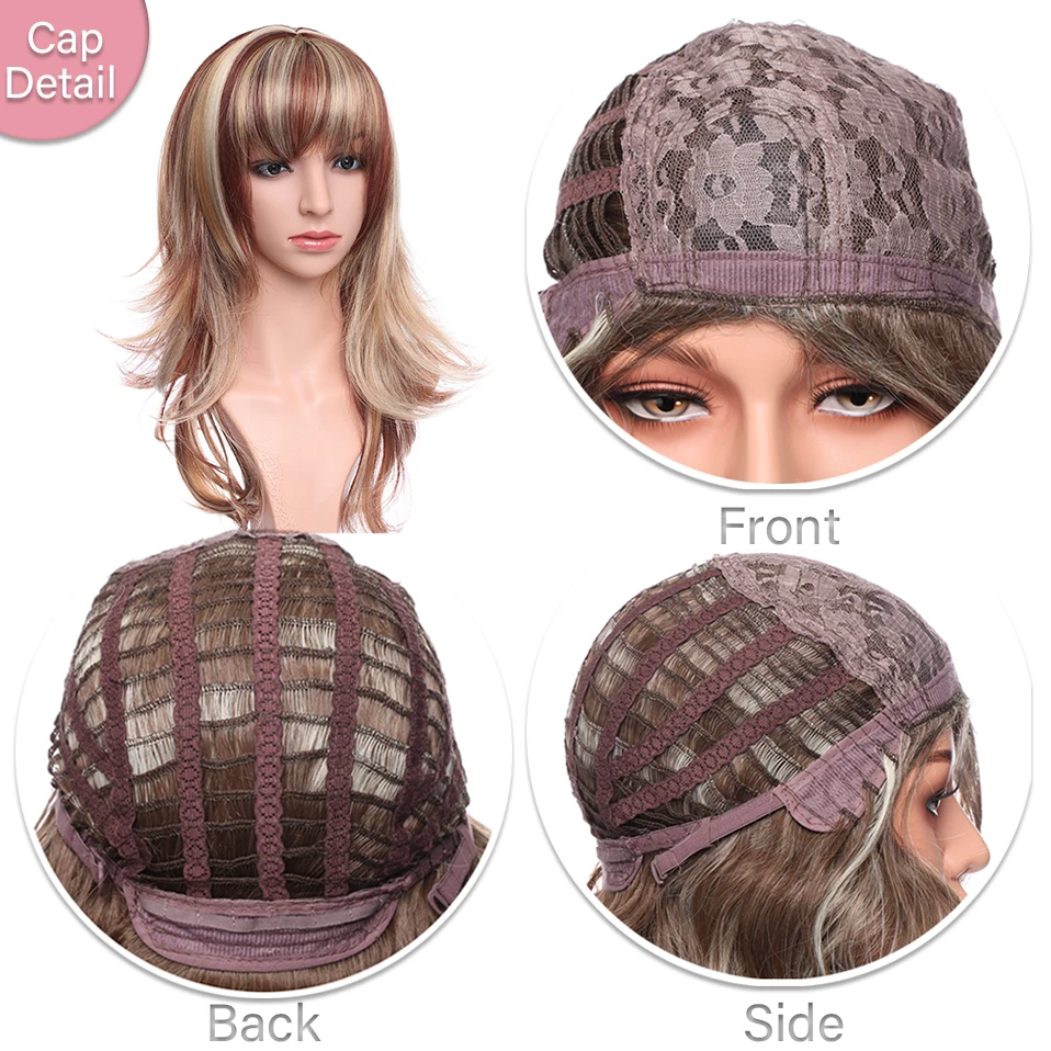 BEST SNOILITE Long Straight Wig With Bangs Synthetic Ombre Black Brown Color Hair Wigs Heat Resistant Gl