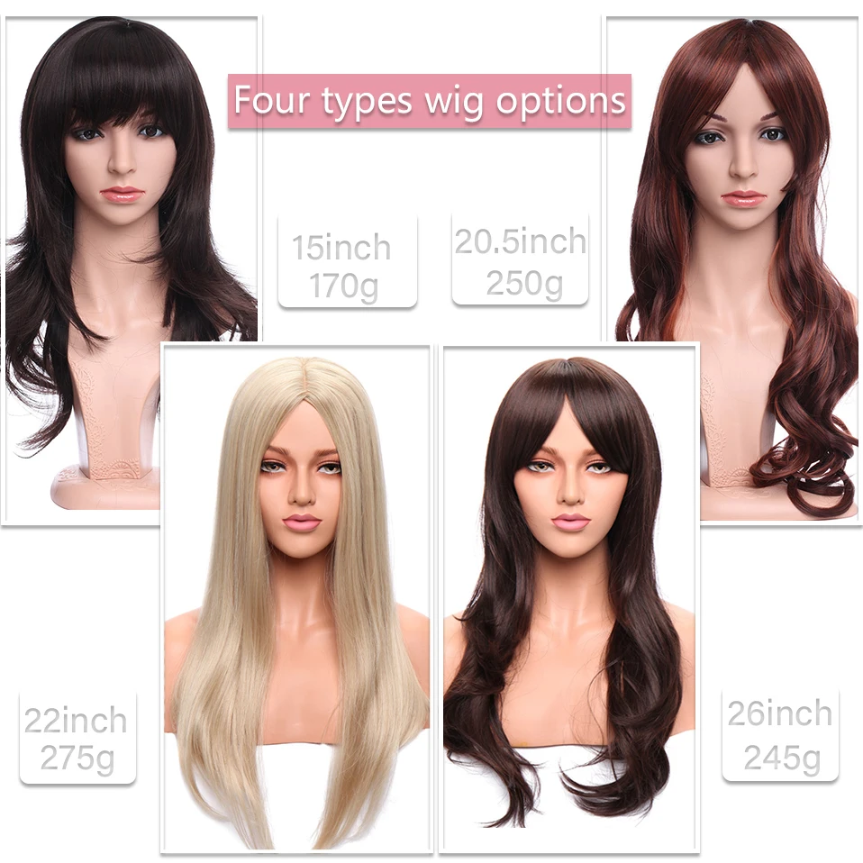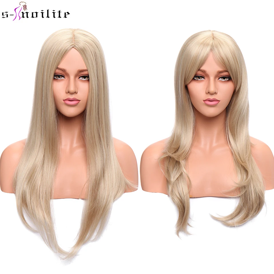 SNOILITE Long Straight Wig With Bangs Synthetic Ombre Black Brown Color Hair Wigs Heat Resistant Gl