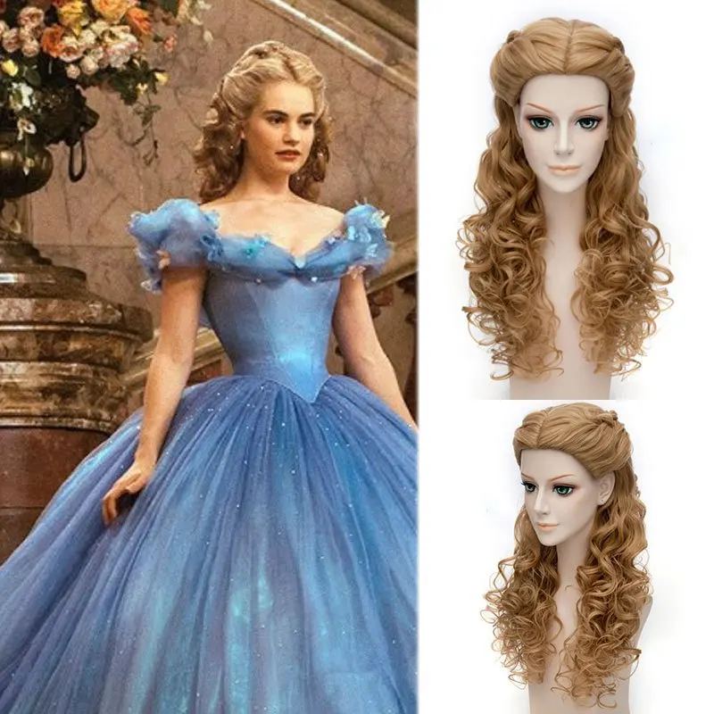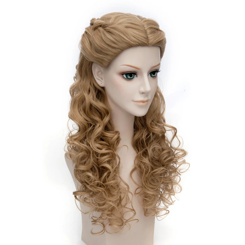 BEST QUALITY Anime 65cm Blonde Mix Wavy Long Central Part Styled Synthetic Hair Cosplay Full Wigs For Women Prin