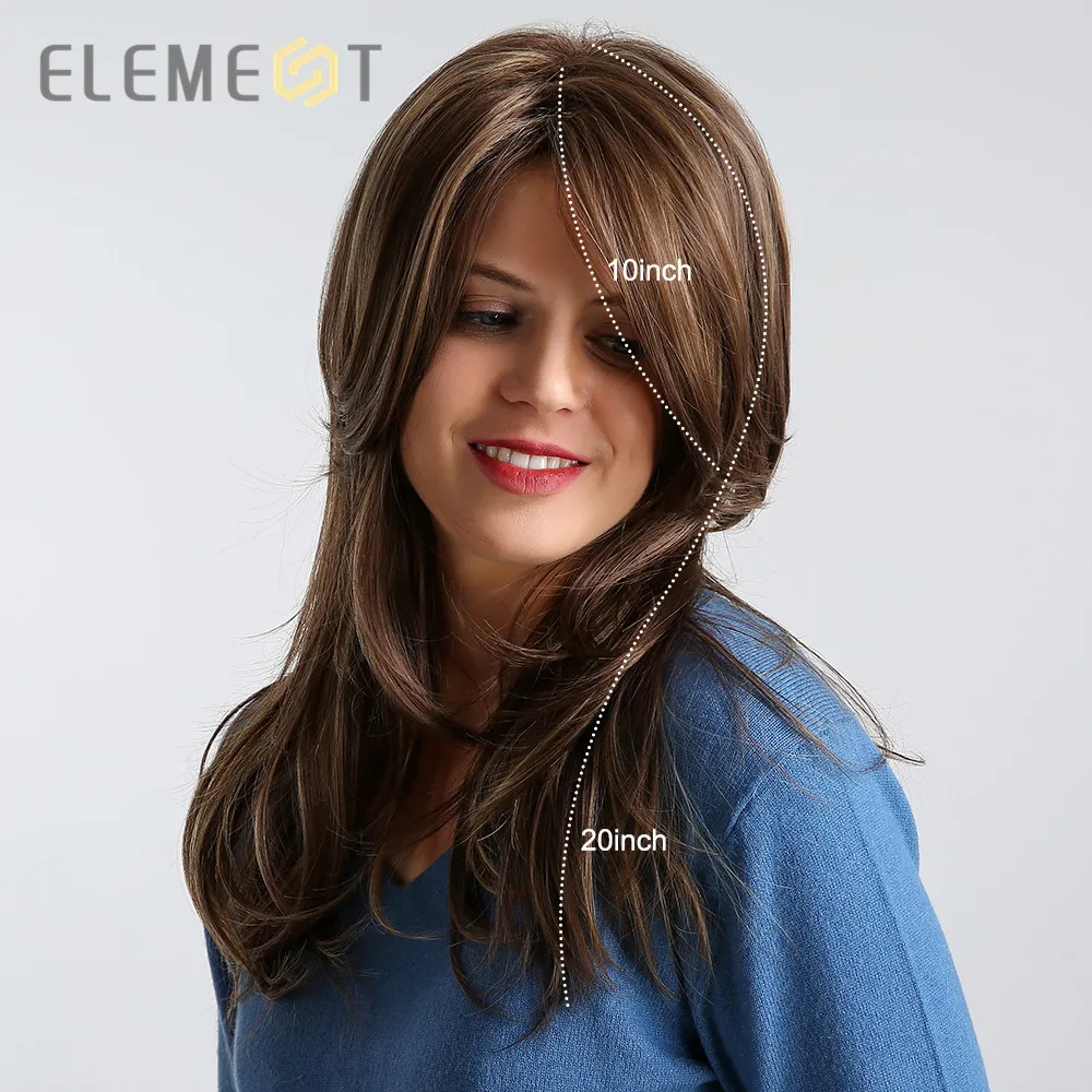 BEST QUALITY Element 20 inch Long Synthetic Wig Right Side Parting High Density Mixed Brown Color Heat Resistant