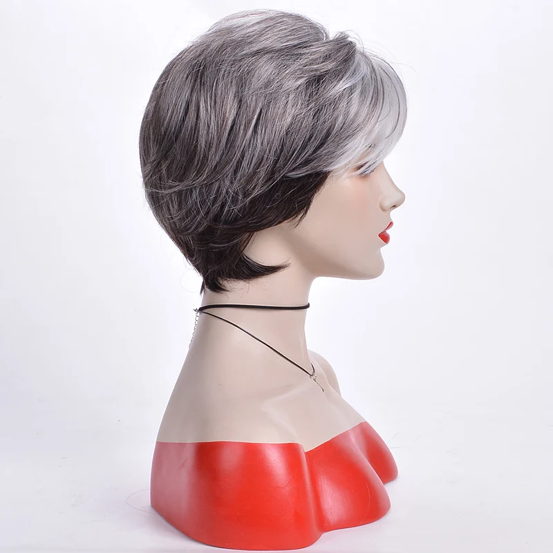 MSIWIGS Women Wig 2 Tones Grey White Ombre Synthetic Short Layered Curly Hair Puffy Bangs Heat Resi